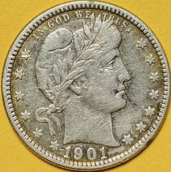 1901 U.S. BARBER SILVER QUARTER 25c COIN (XF-Extra Fine)$50Bellevue, WA