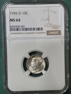 1945-D U.S. MERCURY SILVER DIME 10c COIN (NGC-Graded MS64)$40Bellevue, WA