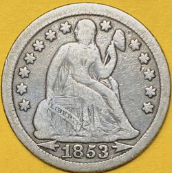 1853 U.S. SEATED LIBERTY SILVER DIME 10c COIN (VF-Very Fine)$40Bellevue, WA