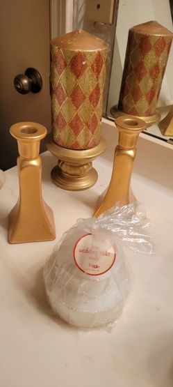 Gold CANDLES and HOLDERS * ANNIVERSARY 50th$10Houston, TX