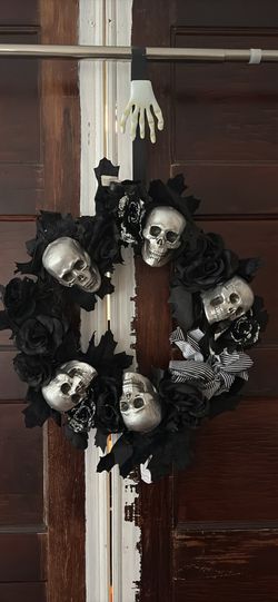 Black Skull Wreath With Black Roses $25Springfield, MA