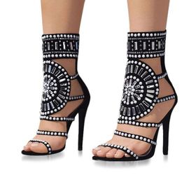 Black Rhinestone-Embellished Gladiator Stiletto Heels – Statement Sandals$30Quail Heights, FL