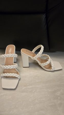 White Braided Strap Block Heel Sandals – Elegant & Versatile$10Quail Heights, FL