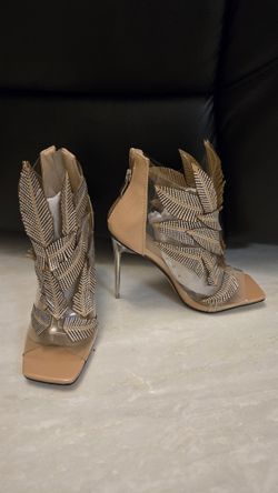 Luxury Leaf-Embellished Stiletto Heels – Nude Transparent Design$15Quail Heights, FL