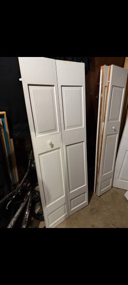 60 in. x 80 in. 6-Panel White Textured Hollow Core MDF Composite Double Bi-fold Door (2) New (4) Used DOORS ONLY NO HARDWARE $180Atlanta, GA