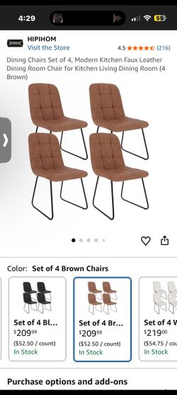 Dining Chairs Set of 4, Modern Kitchen Faux Leather Dining Room Chair for Kitchen Living Dining Room (4 Brown$105Atlanta, GA