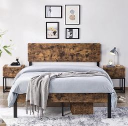Full Metal Platform Bed Frame Mattress Foundation with Rustic Style Wood Headboard/Storage No Box Spring Needed $220Pompano Beach, FL
