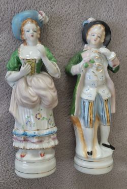 Vintage 8.5" Tall Ceramic L&M Inc. Colonial Couple Figurines/Lipper and Mann Figurines