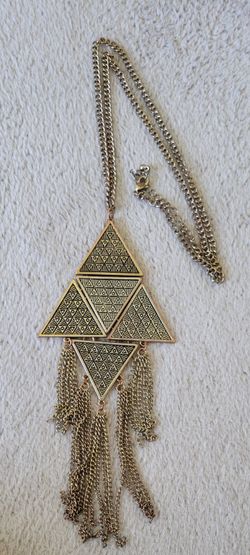 Sweet Vintage Copper Metal Geometric Triangle Fringe Chain Large Statement Boho Hippie Pendant Necklace