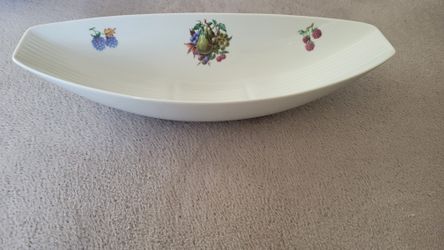 Vintage Naaman Oval Oblong Serving Bowl W Fruit Motif Made In Israel