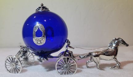 Vtg Sterling Silver Victorian Style Cobalt Blue Horse Drawn Carriage .925 Italy$400Fresno, CA