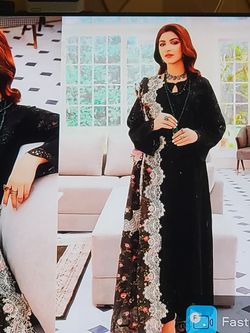 PearlChikankari Indian Pakistani Black Festive, L To XL, Fully Lined, Stitched, No Stain, As New, Lawn Cotton, 3 Piece, Shirt, Pant, Dupatta, Cost $75$75Addison, IL