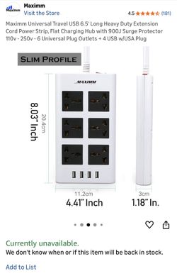 Maximm Universal Travel USB 6.5' Long Heavy Duty Extension Cord Power Strip$15Bothell, WA