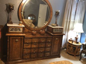 Pulaski 1970’s apothecary style wood and marble Cornwall dresser$800San Antonio, TX