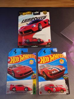 Hot Wheels Ferrari Lot - Car Culture Euro Speed Laferrari 3/5, Mainline Ferrari F40 Competizione #198, Mainline Ferrari 365 GTB4 Competizione #222$30Glenwood, OR