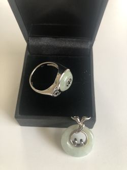 925 Silver Green Jade Ring and Pendant Set Size 7$89Coupland, TX