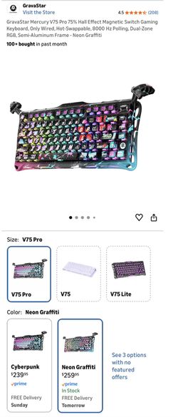 Gravastar V75pro Neon Graffiti Likited Edition Hall Effect Gaming Keyboard$200Katy, TX