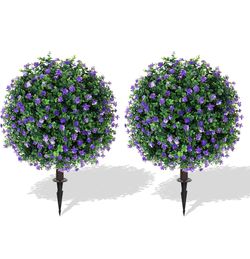 Set of 2 Artificial Purple Flower Topiary Ball Trees with Ground Spike with UV Resistant, Fake Shrub$30Arcadia, CA
