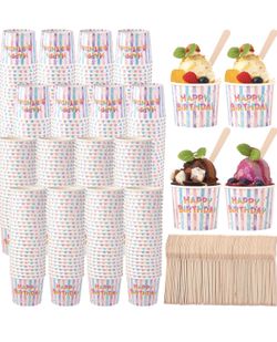 300 Sets Happy Birthday 6 Oz Paper Ice Cream Cups with Wood Spoons, Disposable Sundae Dessert Bowls$25Arcadia, CA