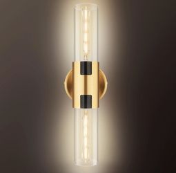 1 Pack Modern Brushed Gold 2-Light Cylinder Vanity Light, 17.5" Indoor Wall Sconce with Clear Glass$30Arcadia, CA