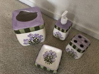 Used 4pcs. Ceramic Bathroom Set Includes: Napkin Holder, Toothbrush Holder, Soap Dispenser, Liquid Pump Dispenser $15Las Vegas, NV