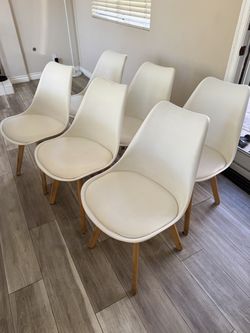 Set of 6 Mid Century Modern Dining Chairs, Shell Lounge Plastic Side Chair with Soft Padded and Wood$120Garden Grove, CA