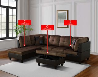 Brown Flannel PVC 3-Piece Couch Living Room Sofa Set$1,199Chicago, IL