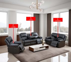 Black Breathing Leather 3-Piece Living Room Recliner Sofa$1,699Chicago, IL