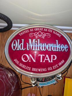 Vintage Old Milwaukee Beer On Tap Schlitz Oval Lighted Double-Sided Sign Brewing$200Ansonia, CT