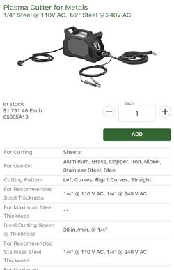 Plasma Cutter For Metals$1,600Buena Park, CA