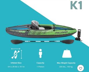 Intex Challenger K1 Inflatable Single Person Kayak Set and Accessory Kit w/ Pump$120Buena Park, CA