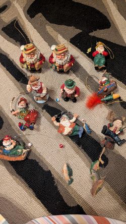 Vintage Fishing Santa Christmas Ornaments Lot – 10 pcs Cute Angler Santas$30Houston, TX