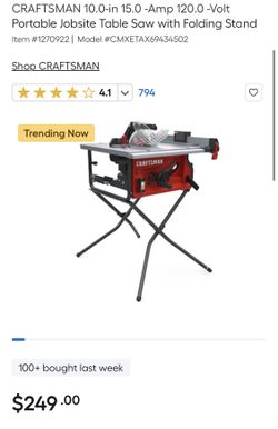 Craftsman 10” Portable Job Site Table Saw$150Lake Stevens, WA