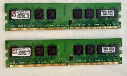 Kingston 2GB kit (2x1GB) PC2-5300 667MHz DDR2 240 pin RAM Sticks - KVR667D2/1GR$12Federal Way, WA
