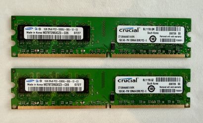 Crucial 2GB Set of 1GB DDR2-667MHz (PC2-5300) Non-ECC, Unbuff CL5, 240-pin DIMM$11Federal Way, WA