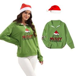 Women's Grinch Quarter Zip Pullover Sweater with Santa Hat$15Glmn Hot Spgs, CA