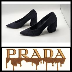 PRADA Black Suede Pointed Toe Banana Slant Heel Pumps Size IT37 US 7$175Los Angeles, CA