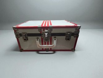 Gorgeous Red Striped White Carrying Case Metal Trunk 1950s Chicago Skate Co$120Los Angeles, CA