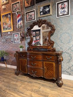Vintage Ornate Wooden Dresser with Carved Mirror Antique Style Chest of Drawers $699Miami, FL