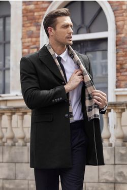 COOFANDY Men's Wool Blend Coat with Detachable Plaid Scarfs Notched Collar Single Breasted Pea Coat Trench Overcoat$20Irvine, CA