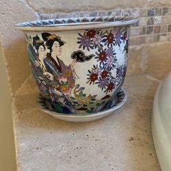 Antique Chinese Porcelain Family Rose Flowers Hand Painted Marked Plant CachePot Bowl$50Coweta, OK
