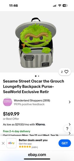 Oscar The Grouch Velvety Hard Tag Loungefly.backpack NWT In Bag. Pu Bridgewater $70Bridgewater, MA