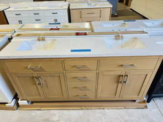 72” Bathroom Vanity in Natural Oak, double sink soft close solid wood with vanity top in white $1199 $1,199Azalea Park, FL