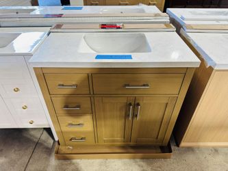 36” Bathroom Vanity in Natural Oak , single sink soft close solid wood with vanity top in white $599 $599Azalea Park, FL