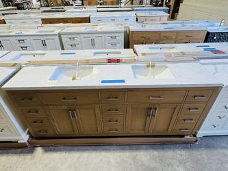 84” Bathroom Vanity in Natural Oak , double sink soft close solid wood with vanity top in white $1499 $1,499Azalea Park, FL