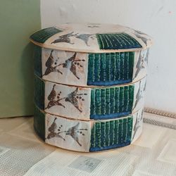 Japan Seto ware Shino Oribe Kato Tozaburo Octagonal Bowl 3-Tier Box Rare Collect$200Renton, WA