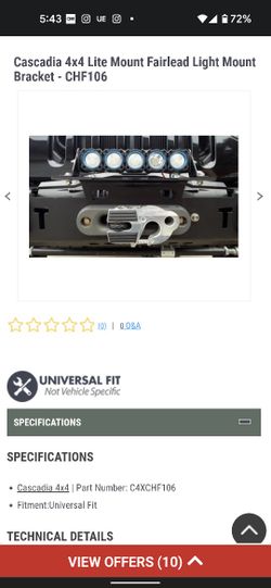 Cascadia 4x4 Lite Mount Fairlead Light Mount Bracket - CHF106$40San Pedro, CA