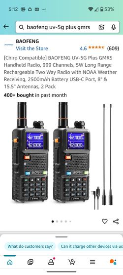 BAOFENG UV-5G Plus GMRS Handheld Radio$60San Pedro, CA