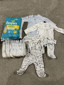 Pampers Preemie Diapers & 3 Zip-up Onesies$15Oakbrook, WA