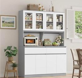 74.4''Hx63''W Large Pantry Cabinet for Food Storage, Kitchen Hutch Cabinet with Storage, Glass Doors Tall Wine Bar Cabinet,$279Downey, CA